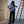 Färg: Mörkblå med smala vita ränder. Mörkblå knappar.